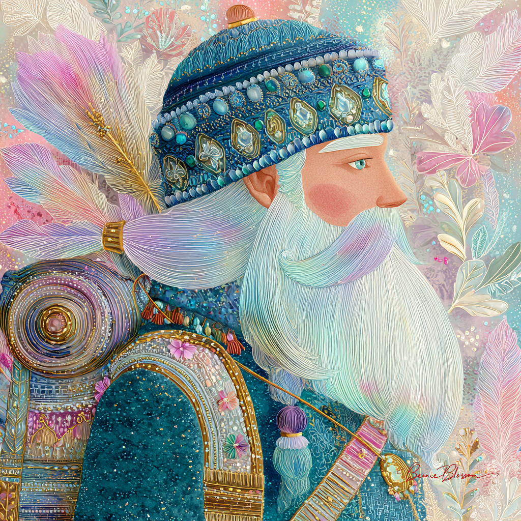 a fairy tale santa claus in the style of rainbow and…